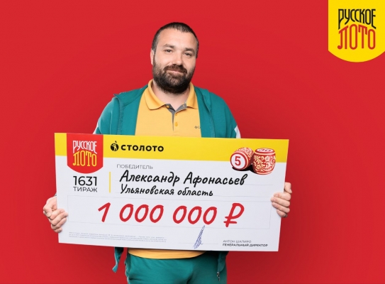В 1631-м тираже «Русского лото» 1 000 000 рублей выиграл билет жителя Ульяновской области Александра Афонасьева.
