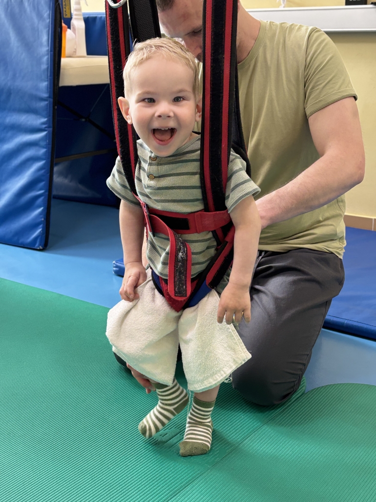 Сейчас Марк почти не может ходить: ножки не слушаются, малыш неправильно встаёт на стопы. Вместо игр и прогулок — боль, упражнения, уколы и постоянные реабилитации. Но несмотря ни на что, Марк — настоящий боец. Врачи с уважением говорят о его невероятной воле и старании, а мама и папа называют своим героем.