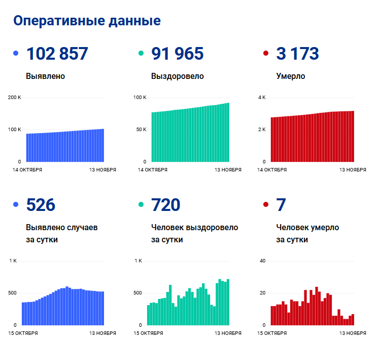По данным федерального оперативного штаба на субботу, 13 ноября, за сутки в Ульяновской области было подтверждено семь смертей от коронавируса, вылечилось 720 человек, заразилось 526.