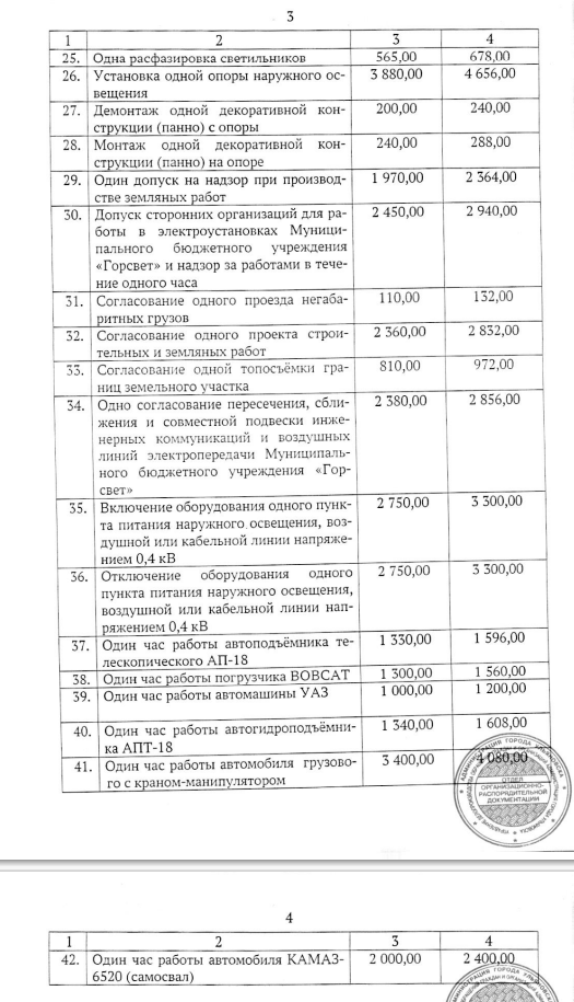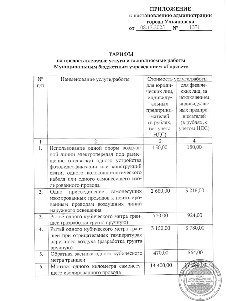 Городская администрация опубликовала тарифы на предоставляемые услуги и выполняемые работы предприятием МБУ «Горсвет» на 2026 год.
