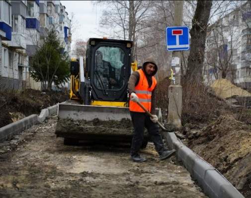 На улице Пушкинской, 4 в Железнодорожном районе работы начались 1 апреля. Сейчас здесь идёт установка нового борткамня взамен демонтированного, ремонт подходов к подъездам, внутридомового проезда и бельевой площадки с устройством нового асфальтобетонного покрытия.