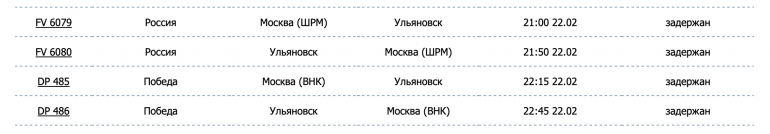 Четыре авиарейса – два из Москвы в Ульяновск и два обратно, по данным онлайн-табло аэропорта в Баратаевке, в настоящий момент задержаны.