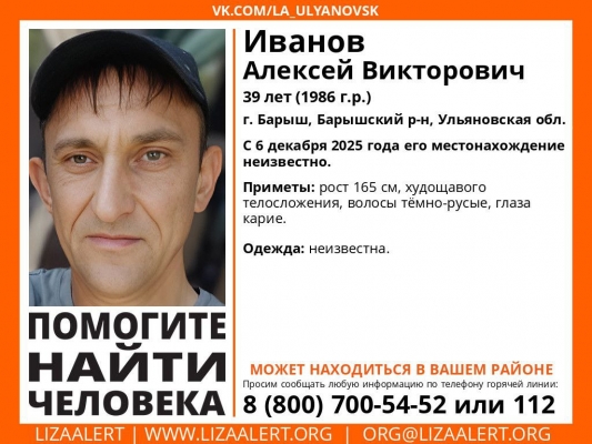 Житель Барыша Алексей Иванов 1986 года рождения пропал 6 декабря 2025 года.