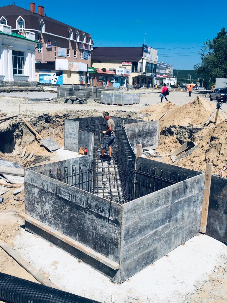 Строители уже сделали котлован глубиной 3 метра, к которому подвели необходимые коммуникации. Сейчас завершают бетонные работы по устройству и укреплению подземной части. Подрядчики уже заказали специальное оборудование, его доставка и подключение начнутся после того, как подготовят основание будущего фонтана.