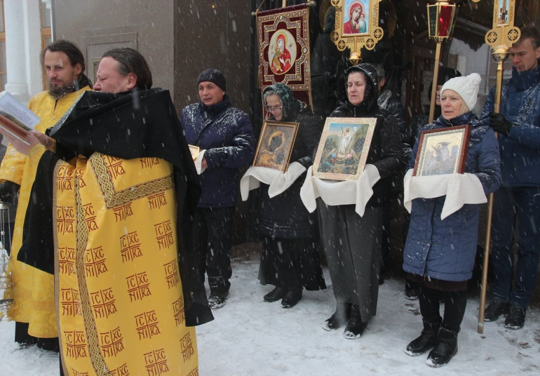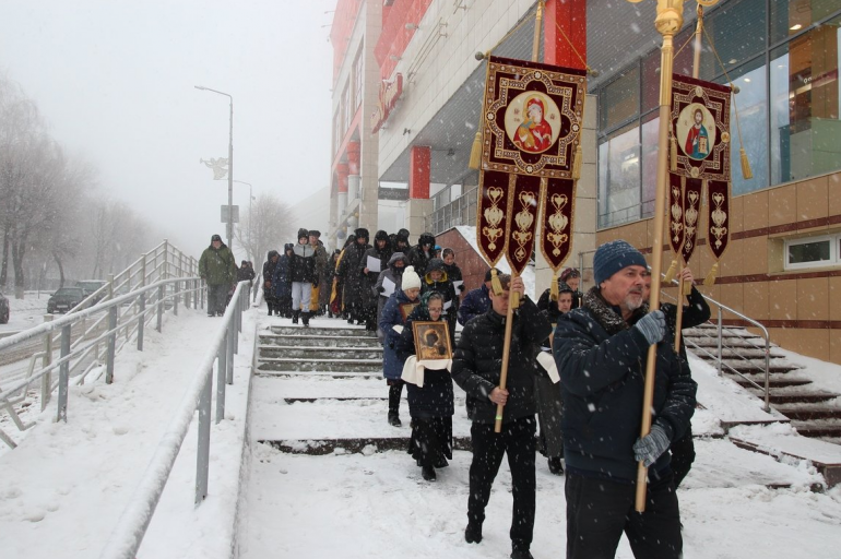 Крестный ход прошел по центральным улицам города вокруг монастыря. В нем приняли участие более 50 человек.