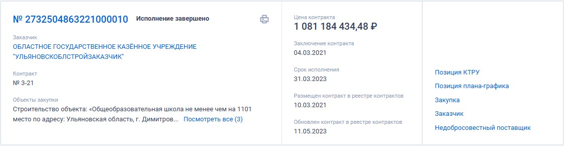 По информации сервиса «Синапс», ООО СЗ «УльяновскЦентрГазСтрой» с 2017 по 2025 год заключил с «Ульяновскоблстройзаказчик» 13 договоров на общую сумму 2,5 млрд рублей. Самый «жирный» подряд — строительство Лицея ядерных технологий. На втором месте — возведение филиала четвёртой поликлиники в Засвияжье стоимостью более 778 миллионов. Всего за всё время общество выступило подрядчиком по 53 договорам на сумму 3,3 млрд рублей.