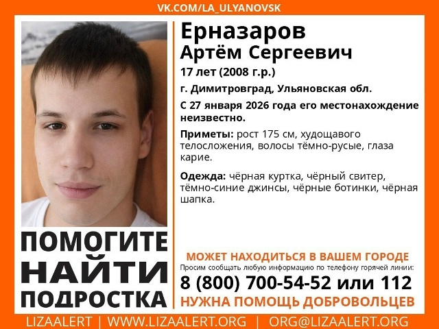 Волонтеры поискового отряда «Лиза Алерт» просят ульяновцев подключиться к поискам Артема Ерназарова.