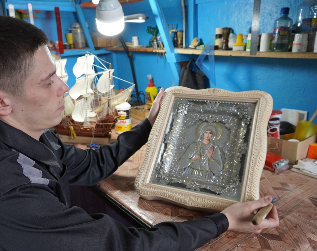 Так, в ИК-10 осужденные занимаются рисованием, резьбой по дереву, чеканкой по металлу, изготавливают иконы. Один из участников творческого кружка почти месяц создает икону с образом святой Златы Болгарской.