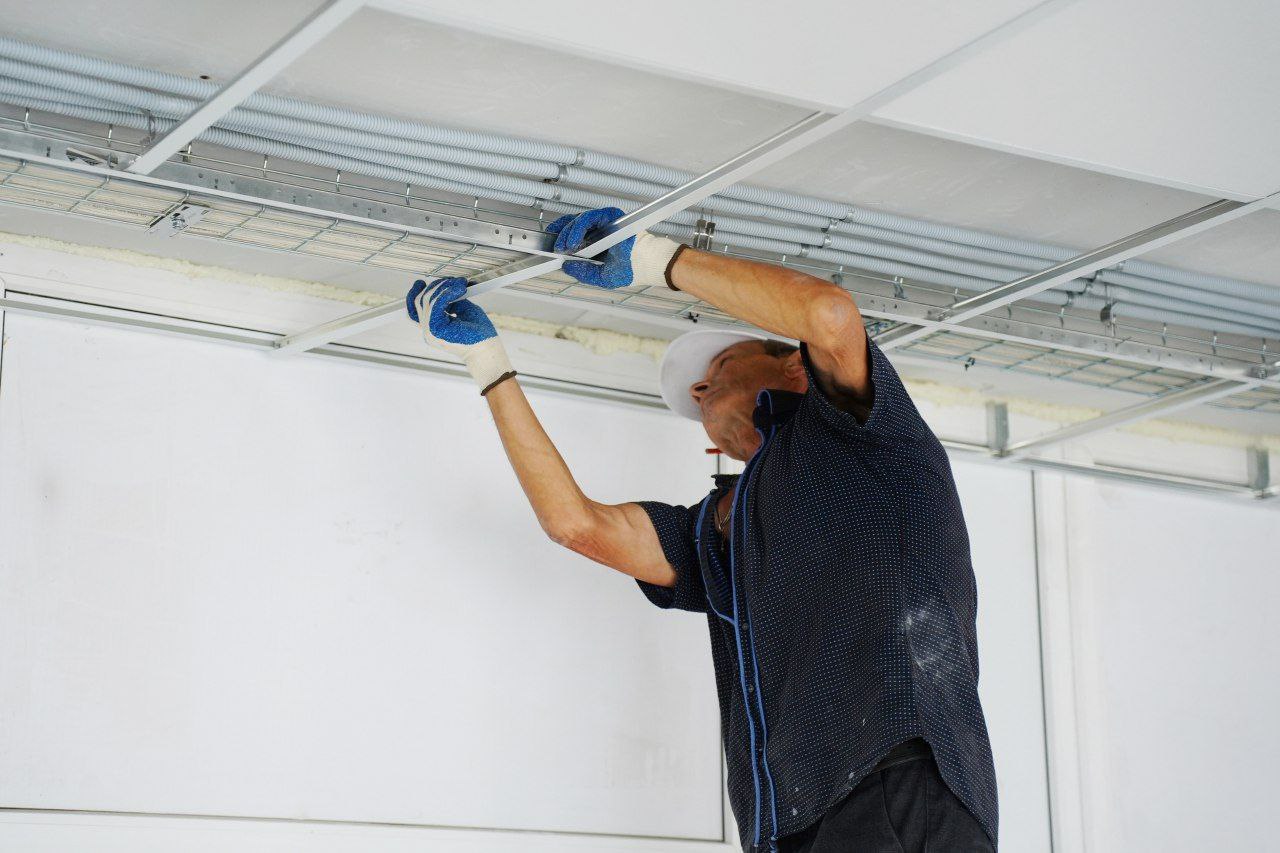 Активными темпами идёт монтаж подвесных потолков, систем электроснабжения и связи. На обновлённых лестничных маршах подрядчик устанавливает перила, в санитарных комнатах осталось смонтировать сантехнику.