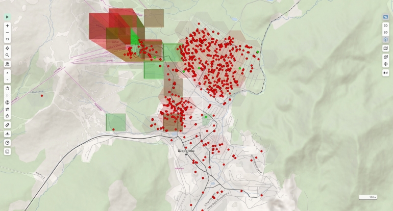 Платформа с использованием ИИ-технологий автоматизировала поиск, анализ и структурирование информации из различных онлайн-источников, а также реализовала визуализацию этих данных на цифровом двойнике. По итогам пилотного проекта в список включены более 1000 гостевых домов Шерегеша с данными о местонахождении, виде разрешенного использования земельного участка, количестве возможных гостей и другой необходимой информацией.