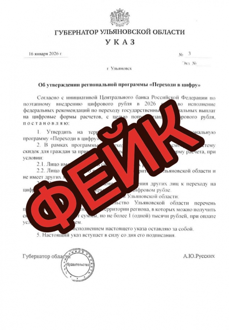 ЦУР Ульяновской области заявил что Указ о переходе на цифровую систему расчетов в Ульяновской области — фейк!