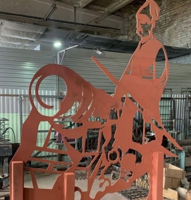 Фигуры вырезаны на листах металла и приварены к каркасу. Одна из них изображает конного, другая — артиллериста возле орудия. Казаки и пушкари прибыли в крепость Корсун из Выползово и Курмыша в середине 17 века. Они дали названия слободам Пушкарская и Казачья. Сегодня — одноимённые улицы.