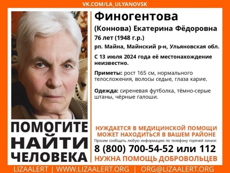 Ей требуется медицинская помощь. Волонтеры «Лиза Алерт» просят ульяновцев подключиться к поискам.