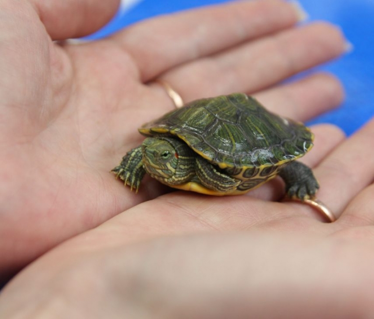 В муниципальном учреждении Ульяновска «Правый берег» завёлся маленький питомец. Черепашонок живет в цехе по изготовлению дорожных знаков.