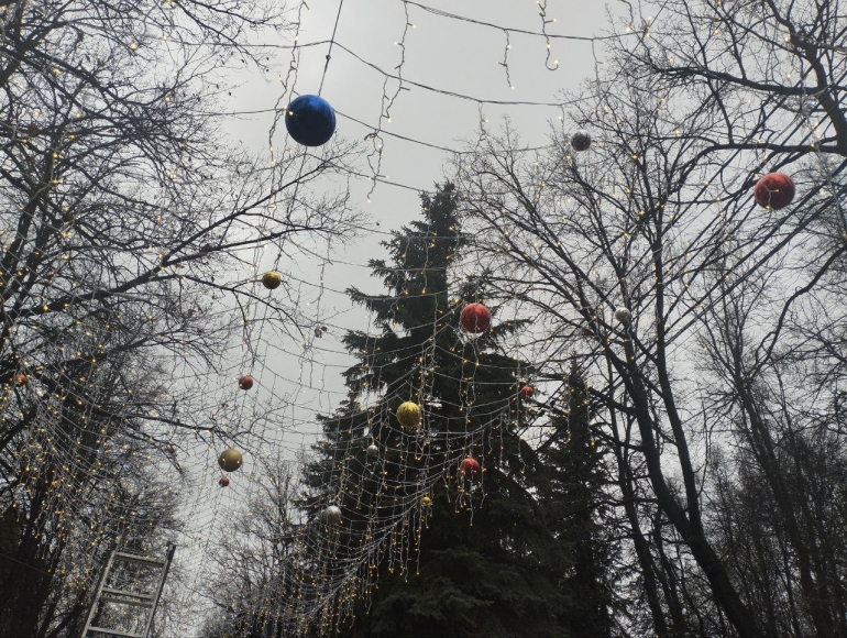 Пресс-служба мэрии сообщает, что сегодня, 18 ноября, в парке Победы, который находится в северной части города, специалисты монтируют световой потолок и ёлочные шары.