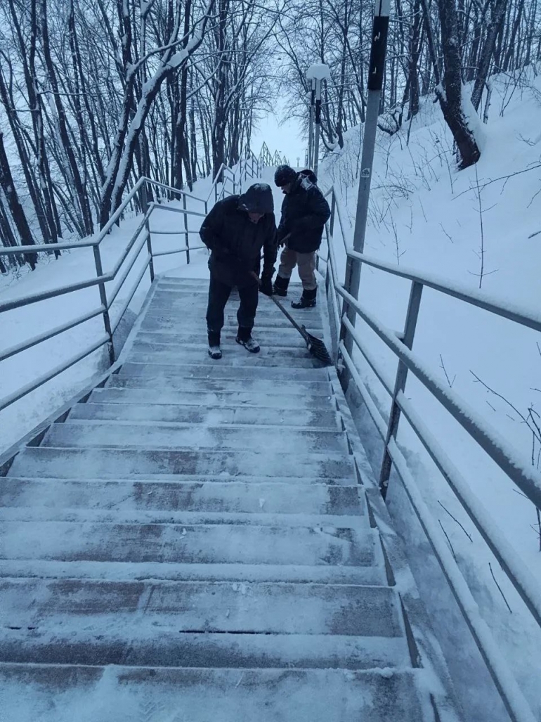 – Зима в этот раз выдает пятилетку за полгода! Но и мы не сдаем позиции - перевес пока на стороне команды «Прибрежного». Мобилизовали все ресурсы. Когда готовились к зимнему сезону, приобрели для трактора допоборудование. Там, где ему не проехать, чистим лопатами. Все для того, чтобы горожане с удовольствием наслаждались красотой природы в нашем парке, – рассказал директор «Прибрежного» Юрий Мухин.