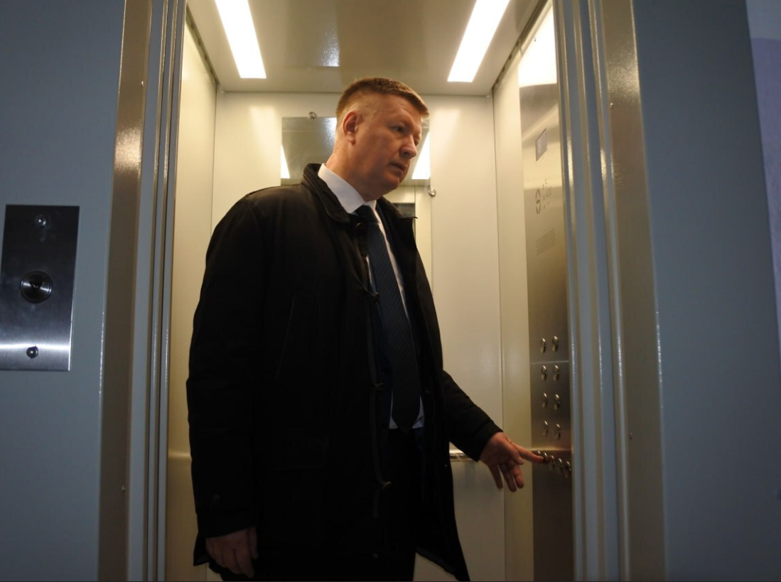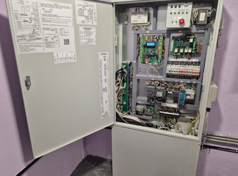 Лифтовики установили новые направляющие, двигатель, оборудование управления, собрали и закрепили новую кабину. Лифт запущен в эксплуатацию, подрядчики и специалисты обслуживающей организации отлаживают его работу.