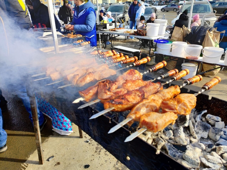 Кроме блинов, в парке сегодня кормили пловом и шашлыками. Словами не передать, как это вкусно!