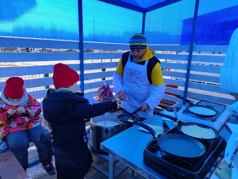 А потом встал к плите и начал печь блины. В компании руководителя ООО «А-Групп» Ростислава Эдварса и генерального директора предприятия Эдгара Красаускаса, которые выступили спонсорами праздника, угощение получалось особенно вкусным. Продукты для мероприятия предоставила компания «Альтернатива». Со сцены ведущие задорно приглашали пробовать блины от директора парка, в итоге к нему выстроилась самая большая очередь! Голодным никто не ушёл!