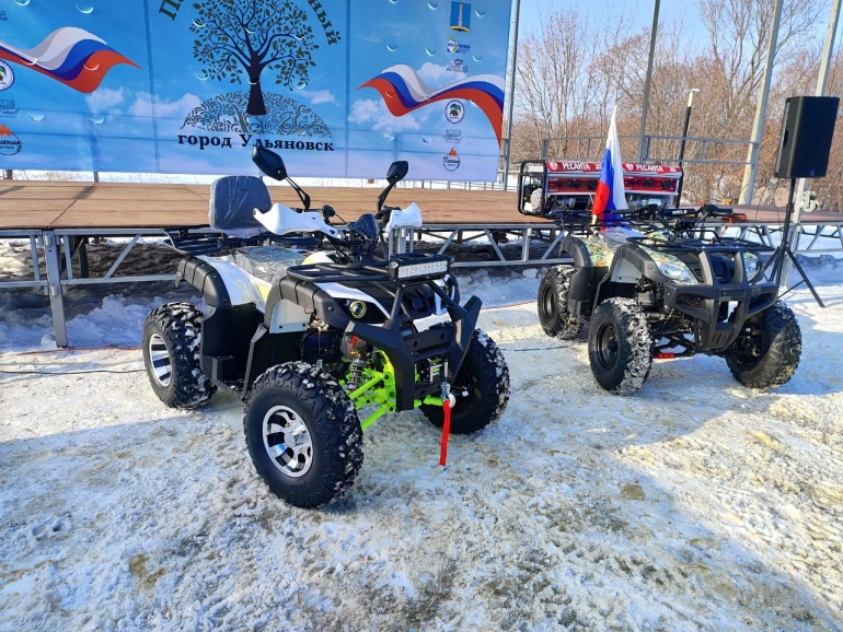 Поздравить горожан с праздником приехали сенатор Сергей Рябухин и мэр Ульяновска Александр Болдакин. Они пожелали ульяновцам всего самого лучшего, а также старшине ульяновского артиллерийского дивизиона имени Александра Матросова Сергею Малышеву с позывным «Медведь» передали для бойцов СВО очередную партию гуманитарного груза. В этот раз для военнослужащих закупили квадроциклы, генераторы, тепловые пушки.
