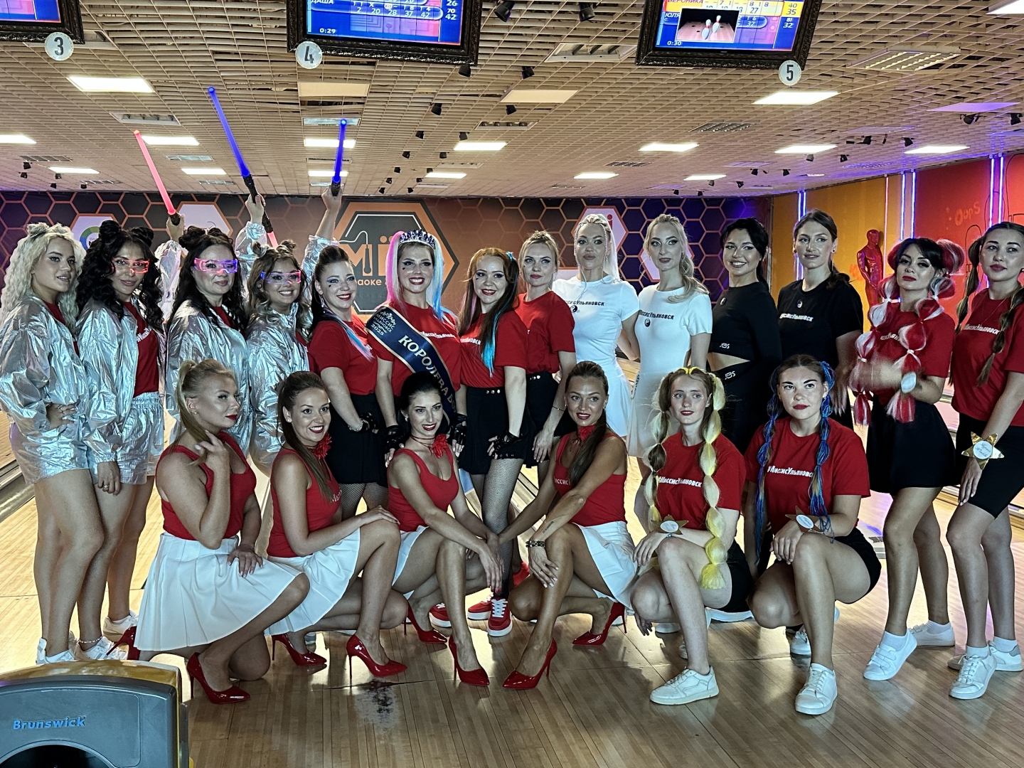 Корону передали Алёне Ласкиной из «Страйк гёрлз» — девушка выбила больше всего кеглей и получает звание «Королева боулинга».
