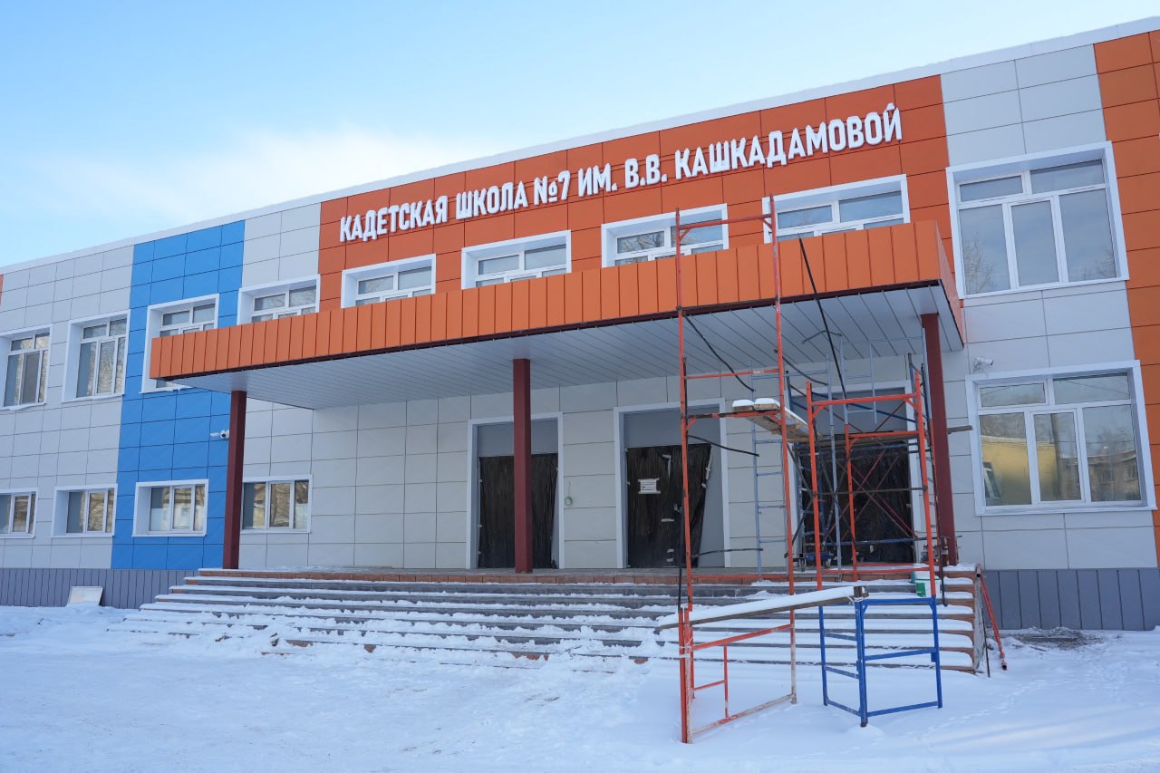 Рабочие ведут отделку стен в школьном музее имени Веры Васильевны Кашкадамовой и в коридорах второго этажа. Продолжаются сантехнические работы, установка дверей и мебели, отделка и оформление кабинетов и рекреаций.