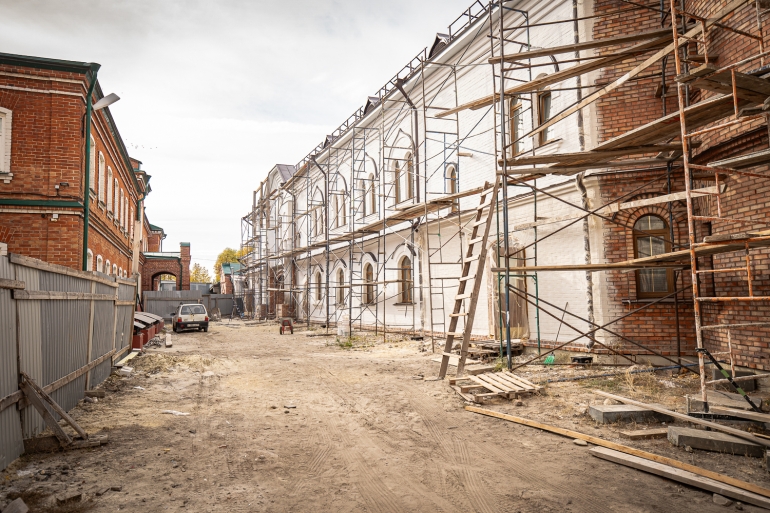 В сопровождении главного инженера монастыря владыка осмотрел строящийся административный корпус. В нем разместятся музей Спасской обители — старейшей в Симбирске, основанной одновременно с городом, библиотека, паломнический центр.
