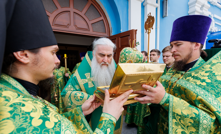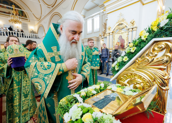 Святыню встретили после Божественной литургии, которую совершил Митрополит Симбирский и Новоспасский Лонгин.