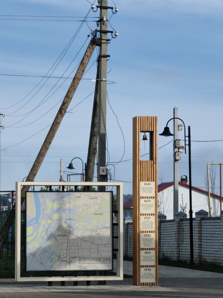 – В память о затопленных деревнях, находившихся на территории Старомайнского залива, мы поставили арт-объект, включающий в себя карту, наглядно демонстрирующую, какие территории ушли под воду, а также столб с колоколом, на котором отмечены основные исторические вехи посёлка. Съездите, посмотрите, это интересно и познавательно, – написали авторы проекта.
