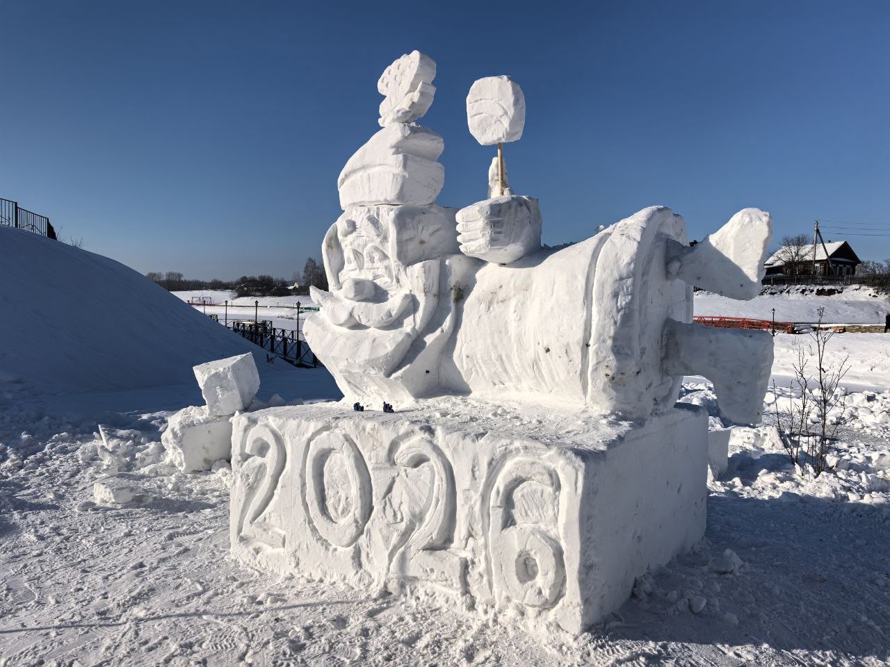 Командам необходимо было создать скульптуру из заранее подготовленного снежного куба размером 200 на 200 сантиметров. Скульптуры отличались разнообразием тем: среди них были лошади, сказочная Царевна-лягушка, «Печки-лавочки» с Емелей, самовар и волшебный паровоз Дедушки Мороза.