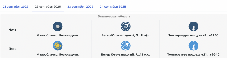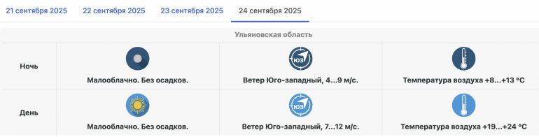 Начало следующей рабочей недели в Ульяновской области будет очень теплым. Синоптики прогнозирут малооблачную погоду без осадков со слабым ветром. Завтра днем температура воздуха поднимется до +26 градусов.