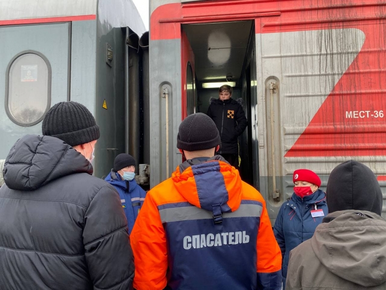 На ж/д станцию прибудут три автобуса, две бригады медицины и катастроф, экипаж ГИБДД. Все эвакуированные осмотрены и обследованы медиками. Острых заболеваний нет, тесты на грипп и ковид отрицательные. Госпитализации никому не требуется. Завтра всех прибывших еще раз осмотрят медицинские специалисты, силами врачей ЦГКБ и горбольницы №1 обеспечат круглосуточное дежурство.