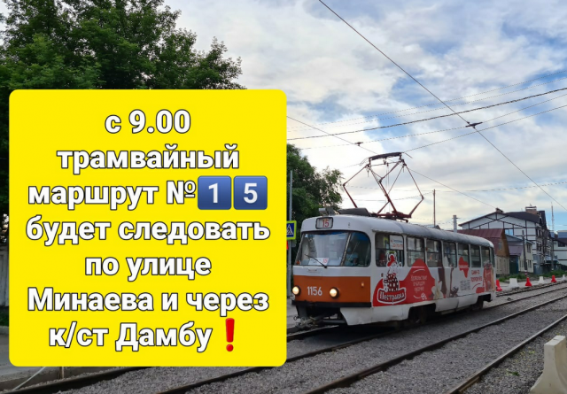 До окончания дорожных работ часов трамвай будет следовать в объезд закрытого участка по улице Минаева.