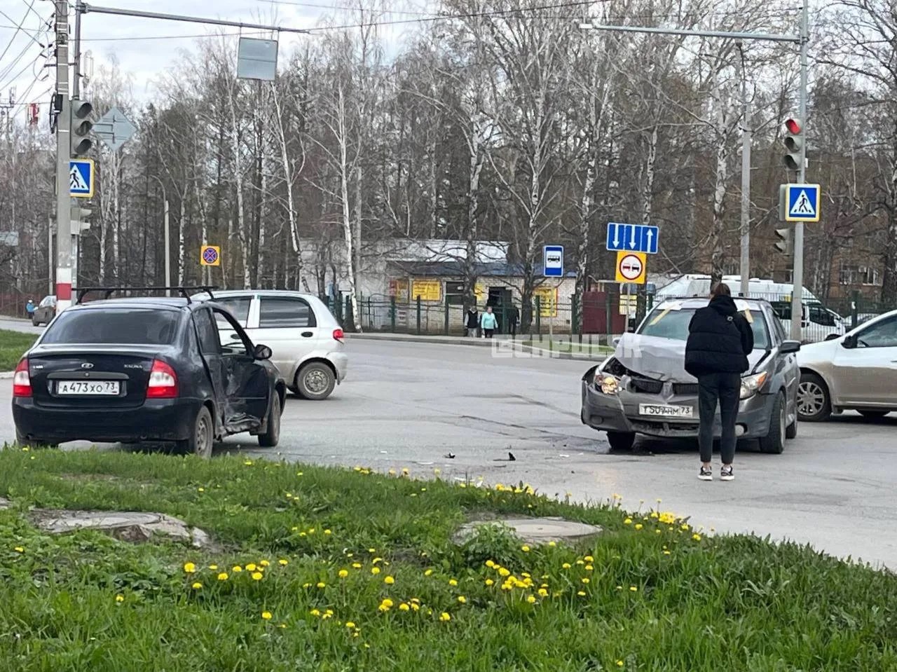Авария случилась на улице Хрустальной. По предварительной информации, на регулируемом перекрестке столкнулись черная Lada Granta и серая Toyota Corolla.