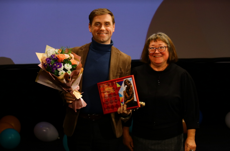 На малой сцене министр искусства и культурной политики Ульяновской области Евгения Сидорова наградила победителей премии «Лучший спектакль» - режиссера Владимира Золотаря и премии «Поддержка «Лицедея» - художественного руководителя Ульяновской театр-студии «ENFАNT-TERRIBLE» Дмитрия Аксенова.