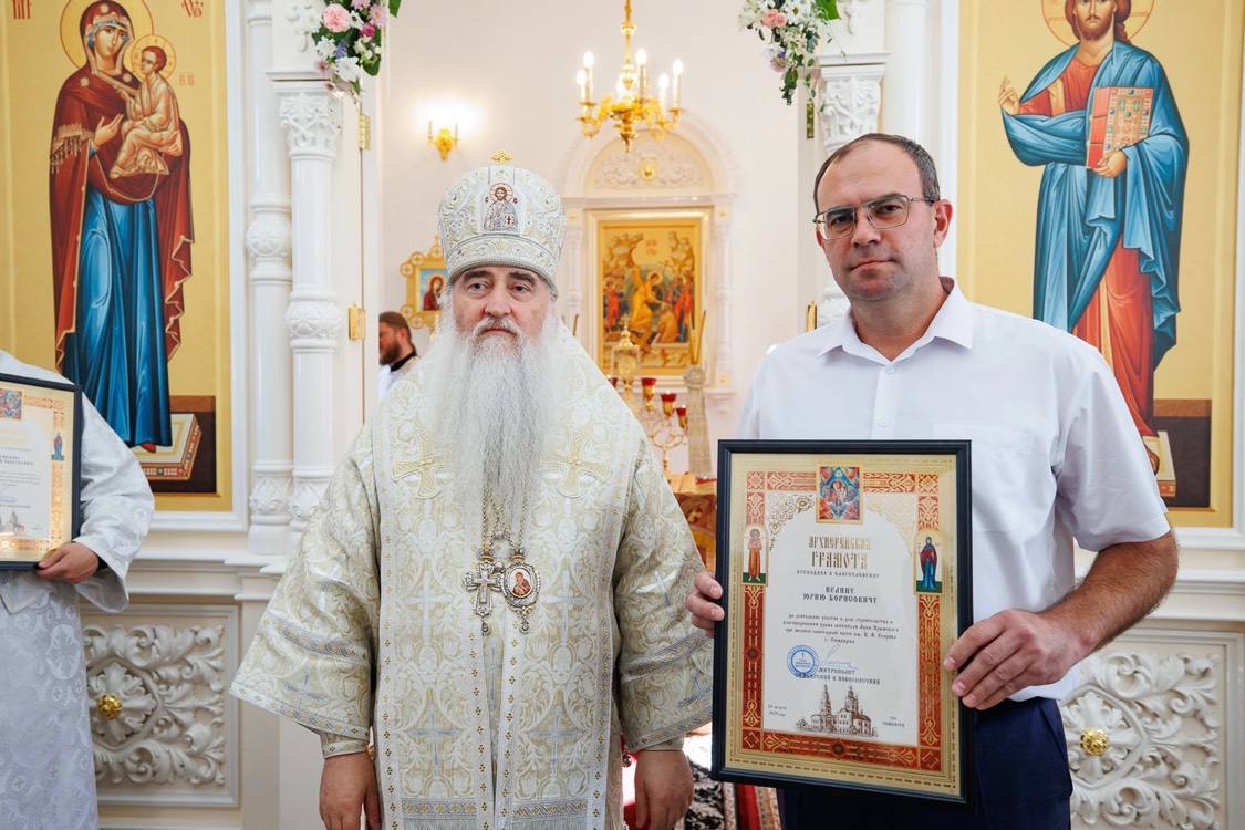 За активное участие в строительстве и обустройстве храма архиерейскую грамоту вручили главному врачу ЦКМСЧ Юрию Келину.