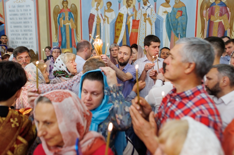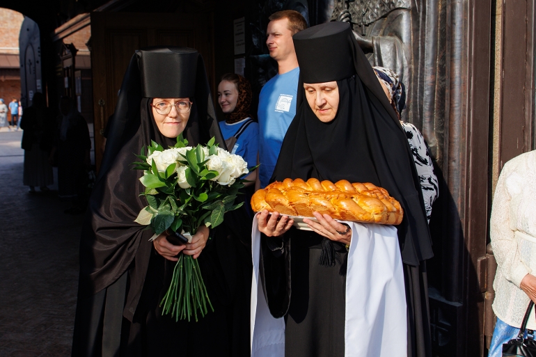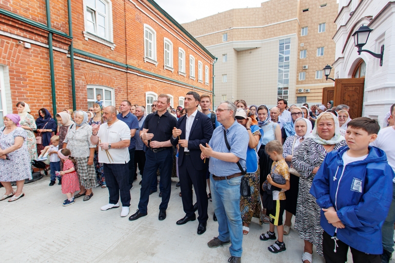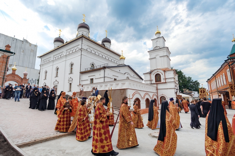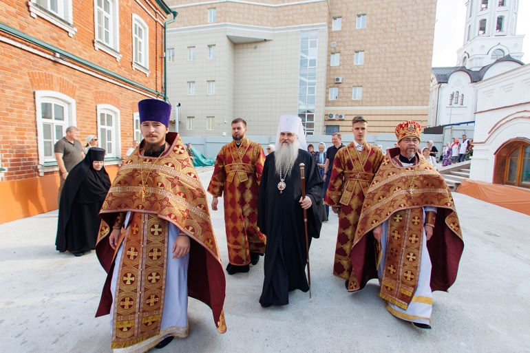 17 июля Митрополит Симбирский и Новоспасский Лонгин совершил Великое освящение храма во имя святых Царственных страстотерпцев — нижнего храма возрождающегося Спасского собора Симбирского женского монастыря. После этого Владыка поздравил сестер и гостей монастыря, благотворителя обители Игоря Любченкова, собравшихся паломников с важным и радостным событием.
