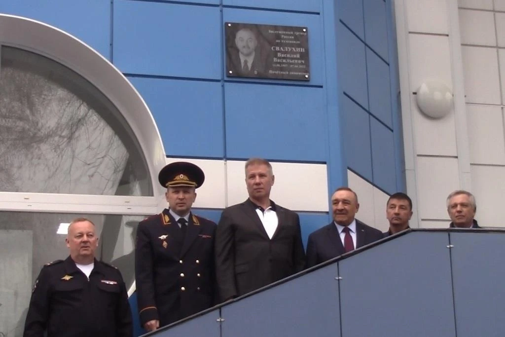 Собравшиеся почтили память Василия Свалухина минутой молчания. Торжественно открыл мемориальную доску Максим Петрушин.