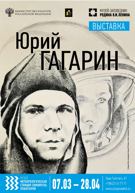 Музей-заповедник «Родина В.И. Ленина» сообщает, что 7 марта в 15:00 в Ульяновске откроется выставка «Юрий Гагарин». Она расположится в музее «Метеорологическая станция Симбирска. Планетарий», который находится на улице Льва Толстого, 67.