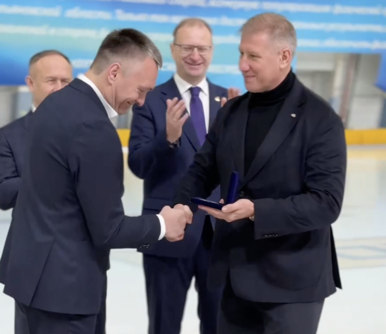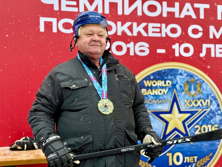 Со знаковым событием ульяновцев в режиме онлайн поздравил Илья АвербухМинистр спорта Николай Цуканов вручил медаль в память о десятилетии Чемпионата мира по хоккею с мячом 2016 нападающему сборной России на Чемпионате мира 2016, первому вице-президенту Федерации хоккея с мячом России Евгению Иванушкину.