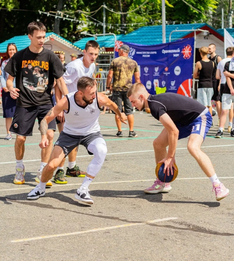 Всероссийский турнир по баскетболу 3х3 «Оранжевый мяч» прошел на Соборной площади 9 августа во время празднования Дня физкультурника.