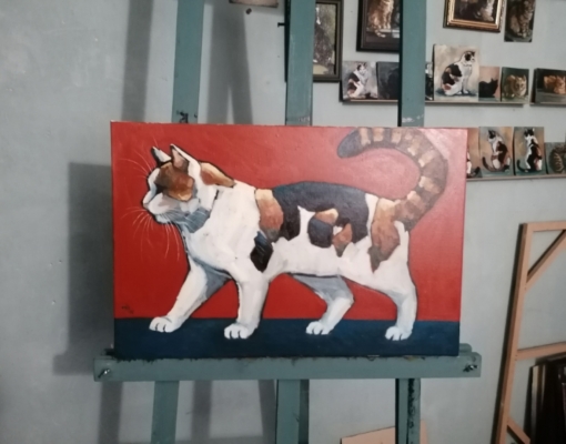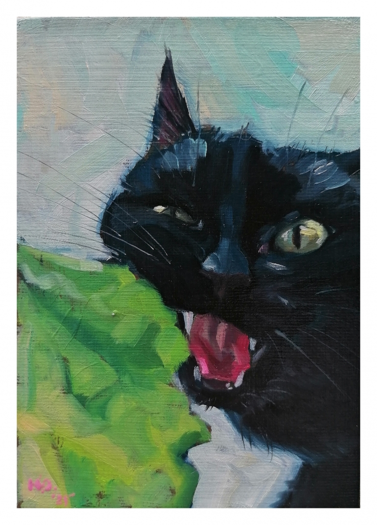 Всего у Юлии четыре питомца, которые служат источником вдохновения. Также героями картин становятся уличные коты. Организовывать выставку автор пока не планирует из-за сложности процесса.