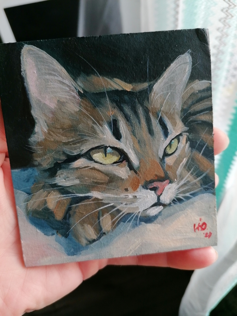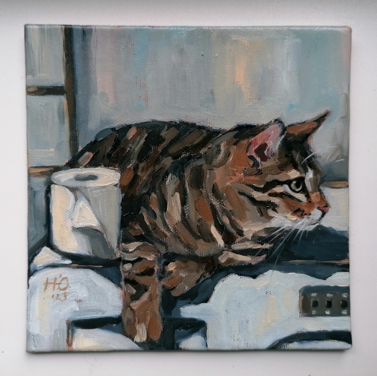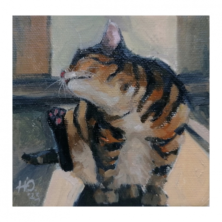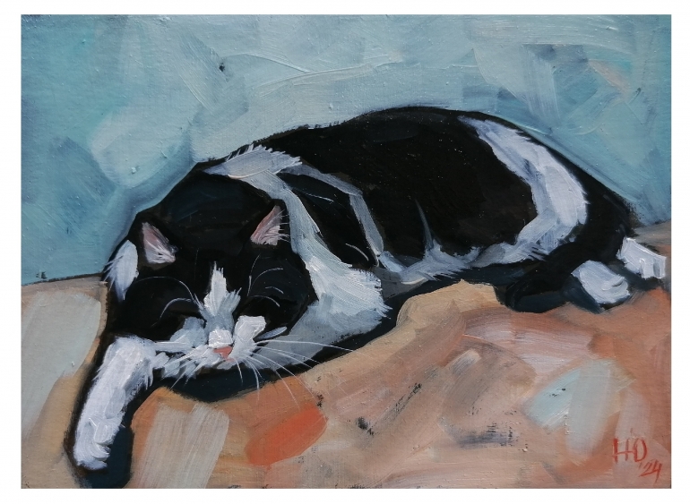 — Параллельно, я нащупывала ту манеру письма, что смогла бы передать моё восприятие — минимум деталей, динамика, экспрессивные мазки по форме и приглушенная палитра, обезличивающая объект до архетипа. Лишь самая суть и мимолетное впечатление. Живопись и кошки стали для меня адаптацией в условиях болезни (недавно мне диагностировали биполярное расстройство второго типа). Бывают тяжёлые периоды, когда я не могу творить, бывают моменты «просветления», в которые я создаю большинство своих авторских работ, — признается Никитина.