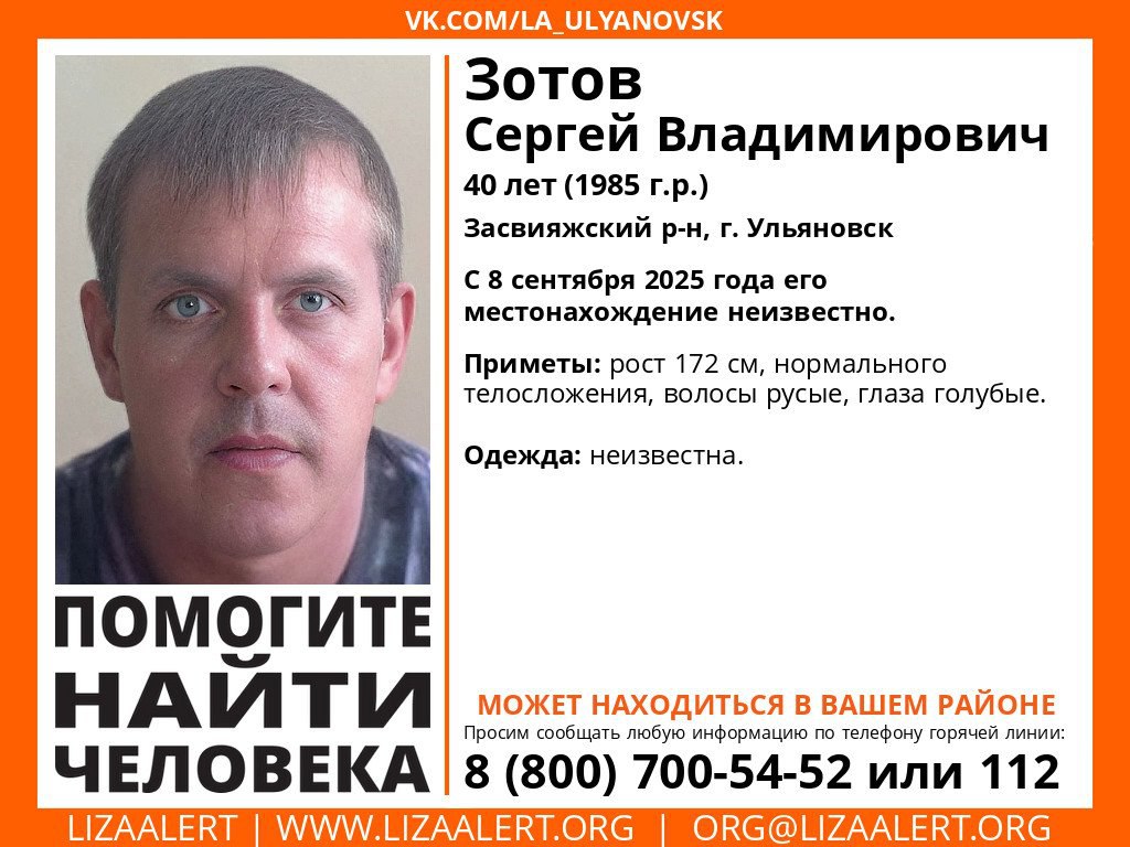 40-летний Сергей Зотов пропал в Засвияжском районе 8 сентября 2025 года.