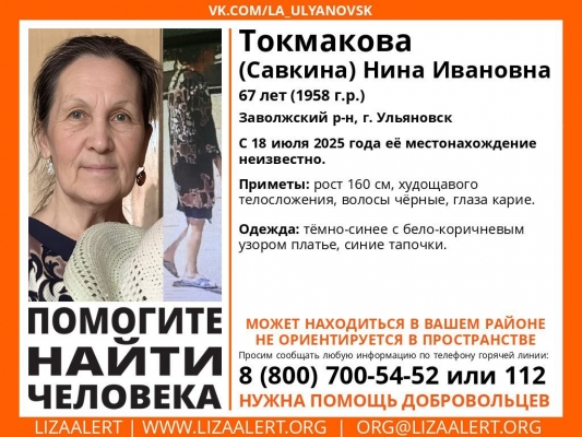 Сейчас ведутся поиски Токмаковой (Савкиной) Нины Ивановны.