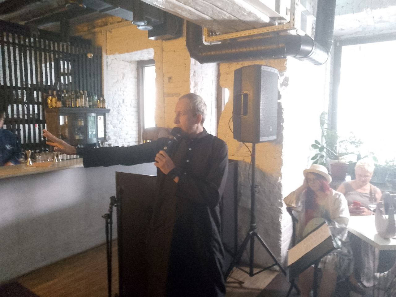 2025-й — год 135-летия со дня рождения Бориса Пастернака (скончался 65 лет назад) и 85-летия Иосифа Бродского. Их стихи и решил вспомнить Павел, добавив в свой перформанс поэзии современного поэта Бориса Рыжего. Их произведения перформер чередовал с собственными рифмованными и прозаическими импровизами, иногда с использованием обсценной лексики. В каждом заведении предлагались специальные напитки, названные в честь поэтов.