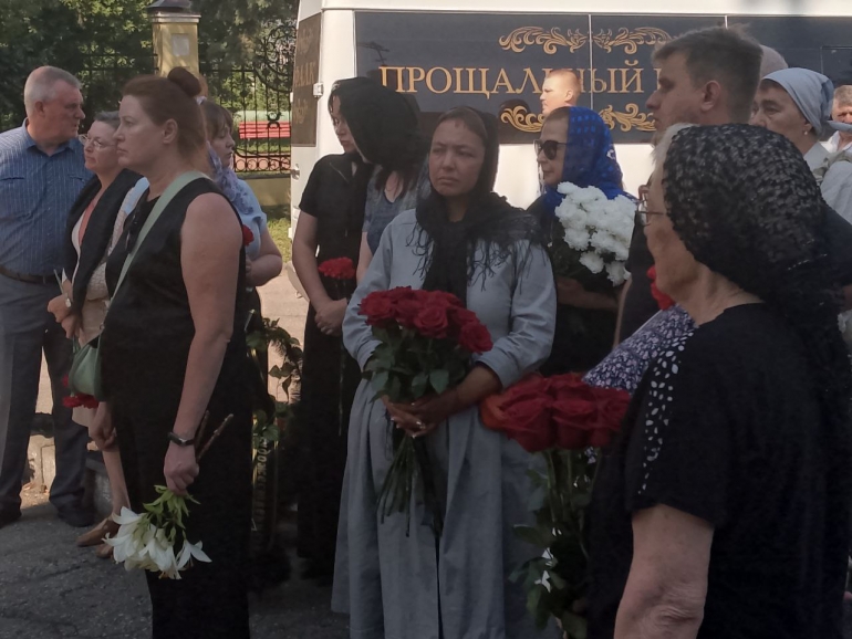 В небольшом храме Всех Святых, входящем в комплекс Спасо-Вознесенского кафедрального собора, где проходит отпевание, народа немного — не более 50 человек. Но это те люди, которым по-настоящему дороги Виктор Сафронов как человек и его творчество. Одной из первых у храма появилась директор Ульяновского областного художественного музея Анна Карвалейру: