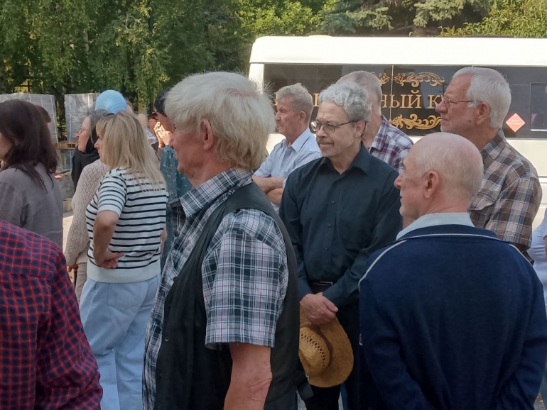 У храма становится всё многолюднее. Подходят коллеги и ученики: Ирек Нуртдинов, Валентин Бобыльков. От министерства искусства и культурной политики Ульяновской области — замминистра Алёна Корчагина. Отдельно в стороне от всех держится друг и соратник 89-летний Аркадий Егуткин. Ему надо переосмыслить. После ухода Сафронова он теперь остаётся единственным в Ульяновске народным художником страны. Вспоминает старшего товарища честно и с любовью: