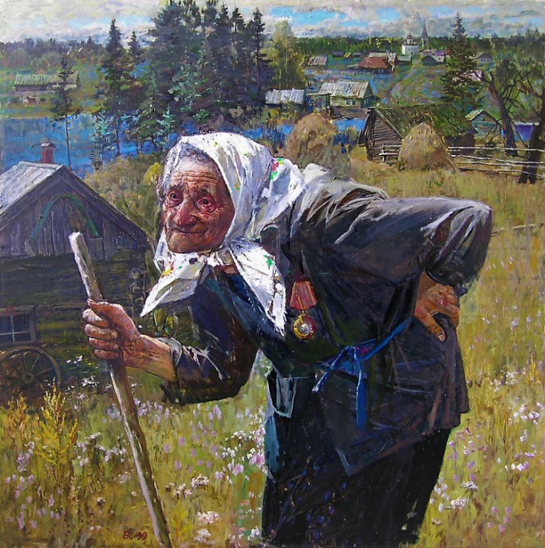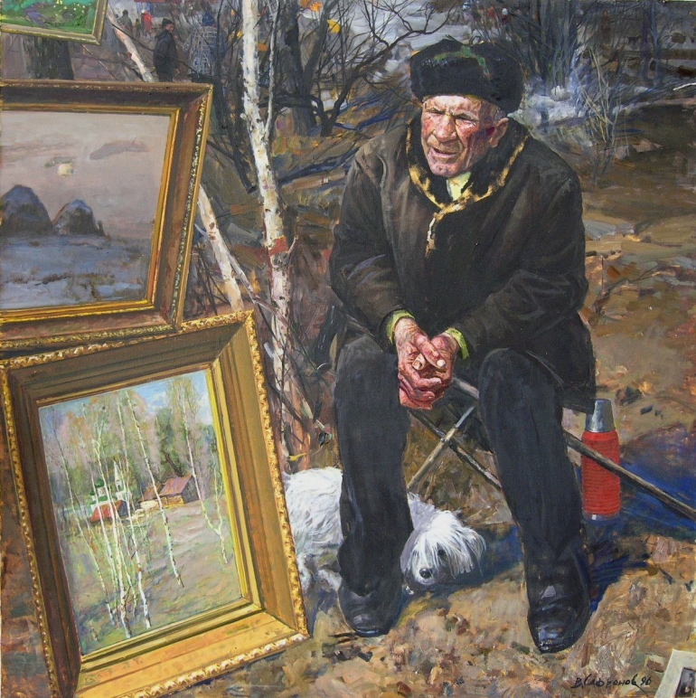 Картины: Всё в прошлом (1999), Портрет внучки главного врача Покровского (1959), Слепой художник (1996), Клятва (1969)