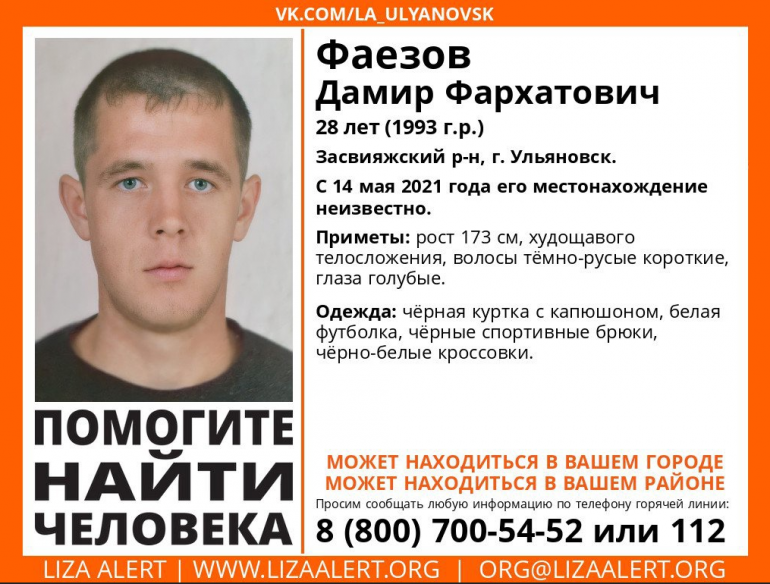 В Засвияжском районе Ульяновска пропал 28-летний местный житель Дамир Фаезов. Его не могут найти больше месяца.